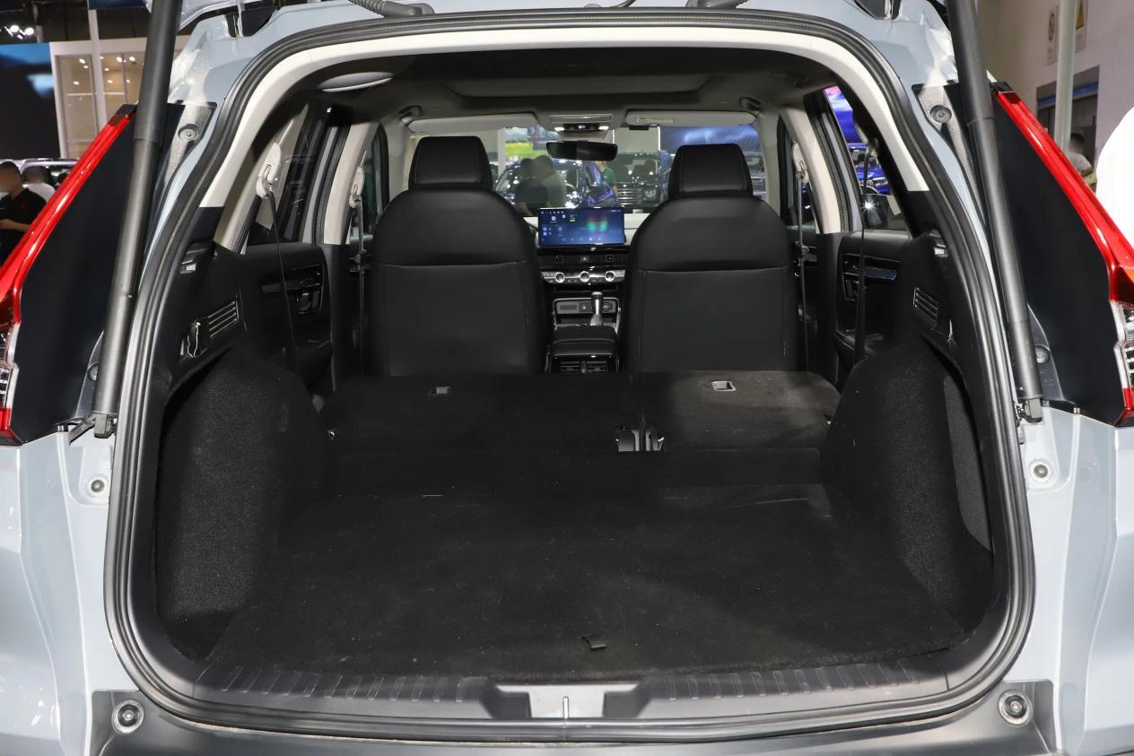 后备箱容积达到586升,后排座椅支持6/4比例放倒,放倒后排座椅后跟后备厢之间有小台阶,不算平整,不过不影响使用,能轻松容纳大型行李和户外装备。电动尾门支持感应开启,双手提着东西也能轻松操作。