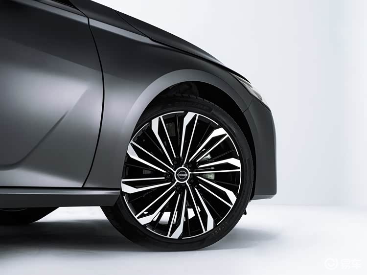 车身侧面,它基本延续现款车型的设计,轴距与车长比接近0.618,整车造型修长动感,双腰线的设计,前车门把手创新的与腰线形成对齐,新车提供了钻面光刃多辐19英寸轮圈。