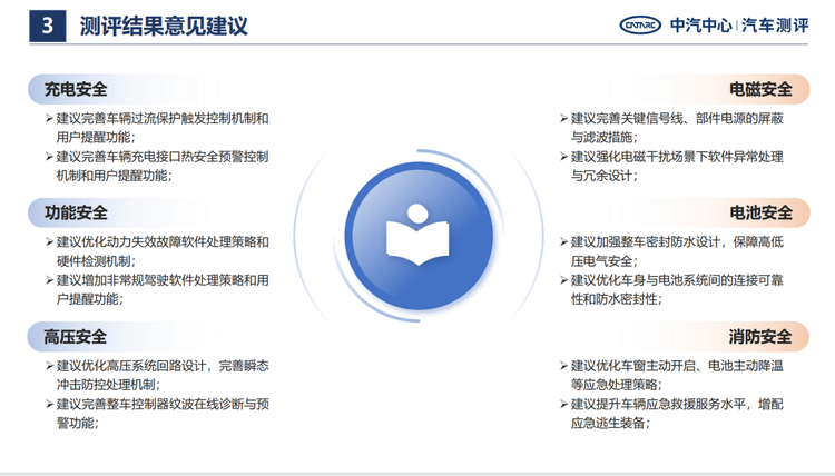 中汽测评提出针对性优化建议,让车辆电气安全更有保障。建议行业优化充电安全预警、动力失效处理、高压系统防护等关键技术,提升应急救援水平。此报告的发布,标志着国内新能源汽车安全评价进入系统化、专业化阶段,为行业树立安全技术基准。