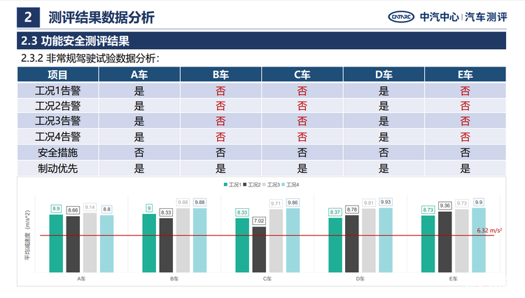 中国新能源汽车电安全测评专项评价是针对新能源汽车电安全的专业评测,不仅为消费者提供新上市车辆的电安全信息,也推动生产企业增强对电安全的重视,提高电安全性能和技术水平。此次揭晓的《第一批测评车型数据分析报告》覆盖极狐阿尔法T5、比亚迪汉L EV等5款不同价位的主流新能源车型,整体表现良好。电磁安全全部达标,所有车型在大功率广播发射台、隧道基站干扰测试中功能无失效;功能安全与电池安全防护可靠,在动力失效场景下均能快速触发安全措施,极限涉水测试中仅1款车型出现座舱进水。