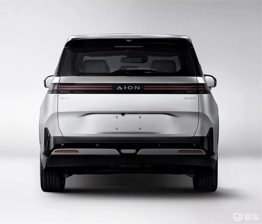 车身尾部,顶部配备高扰流板,尾窗处配备后雨刮器,搭配双线条尾灯,左尾灯下方为埃安标识,右尾灯下方为N60标识。后包围使用银色护板和黑色搪塑材料进行装饰。