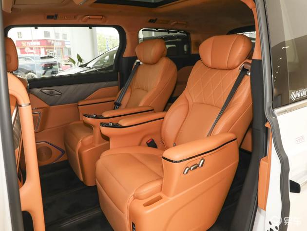 再来看车尾部分。车尾设计延续了车头的东方美学基因,整体造型方正饱满,视觉重心沉稳,既符合MPV的实用属性,又彰显了中高端MPV的豪华格调。车尾配备了升级款“苍松叠翠尾灯”,竖向尾灯与贯穿式LED灯带无缝衔接,灯光点亮时光影如竹影婆娑,尽显中式风骨,与车头星河流光大灯形成前后呼应,夜晚点亮时仪式感十足。车尾采用隐藏式排气布局,下方的贯穿式镀铬饰条与车头形成呼应,进一步提升了精致度。