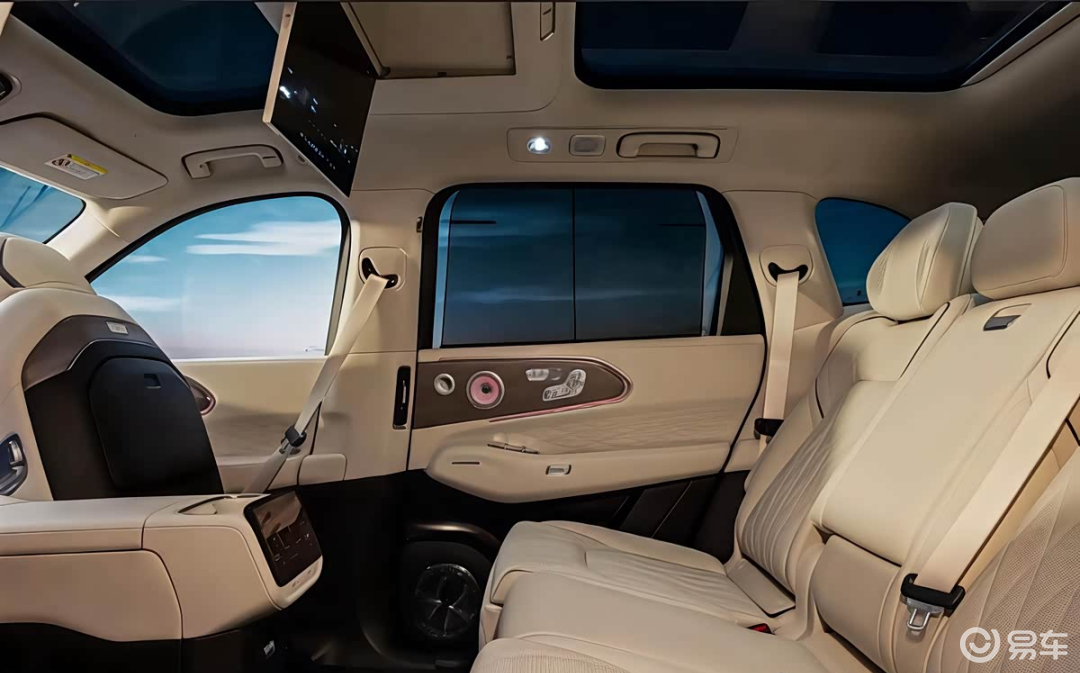 乘坐部分,极氪8X配备了较为宽大的座椅,预计像座椅加热/通风/按摩等功能都不会缺席,而且后排座椅均带有头枕,目测腿部空间也比较富裕,加上后排娱乐屏、双天窗、Naim音响系统、自动空调等一系列配置,舒适性不在话下。