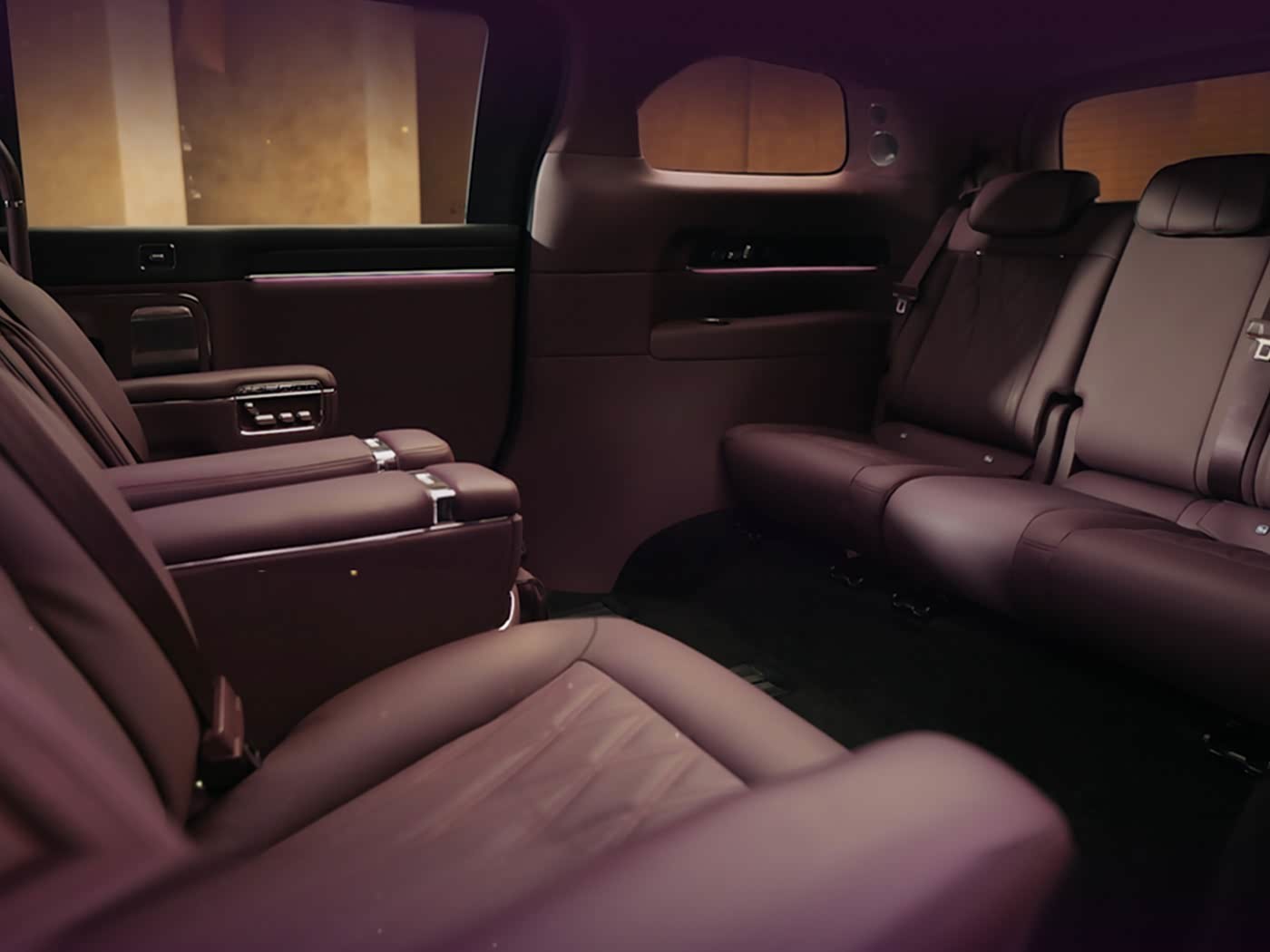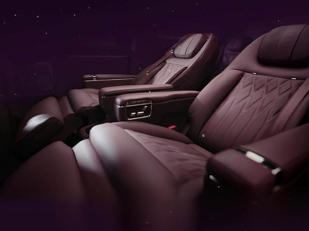 中排提供双零重力座椅,两侧扶手都是固定式,并且保留了座椅的实体控制键,对于不熟悉的车辆的乘客而言更加友好。座椅的填充物厚实有弹性,头枕与靠背式一体式,显得十分宽大舒适。功能也十分齐全,通风加热与按摩都不会缺席,还提供环抱式气囊、手机无线充、小桌板等实用配置。另外,还将搭载同级最大尺寸的吸顶屏,为中后乘客带来高品质娱乐。