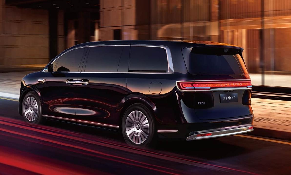 车尾造型略带一点倾斜,车顶也略带下压,不过整体上依然方正,保证空间够大。布置了顶置环绕式尾翼,并将后雨刮隐藏在尾翼下方,使得尾窗干净整洁。贯穿式尾灯依然有很多星钻的装饰,两侧有小蓝灯。底部采用排气管隐藏式布置,增加镀铬条提升精致感。
