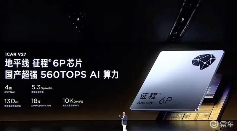 智驾方面,iCAR V27标配超级猎鹰500,拥有3颗毫米波雷达+12颗超声波雷达+2颗800万像素摄像头+9颗300万像素摄像头,辅助驾驶芯片为地平线征程6M,算力128TOPS。顶配车型将搭载超级猎鹰700+,拥有1颗激光雷达+3颗毫米波雷达+12颗超声波雷达+2颗800万像素摄像头+9颗300万像素摄像头,辅助驾驶芯片为地平线征程6P,算力560TOPS,可实现车位到车位领航、城市导航辅助驾驶和高速导航辅助驾驶等。