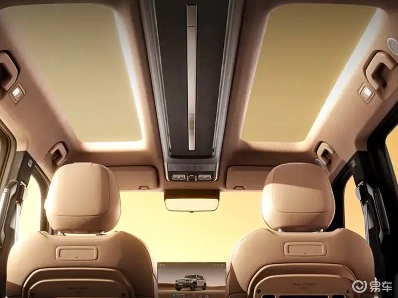 此外,新车在拓展性方面也有不少亮点,全车设有17处51个各类接口,支持灯光、电源等改装,具备1.6吨拖挂资质,车顶静态承重达200公斤,可安装车顶帐篷。