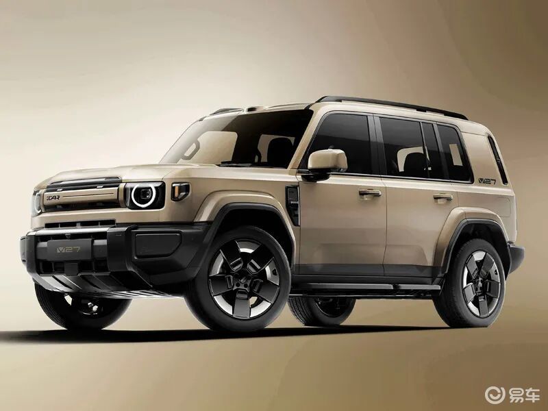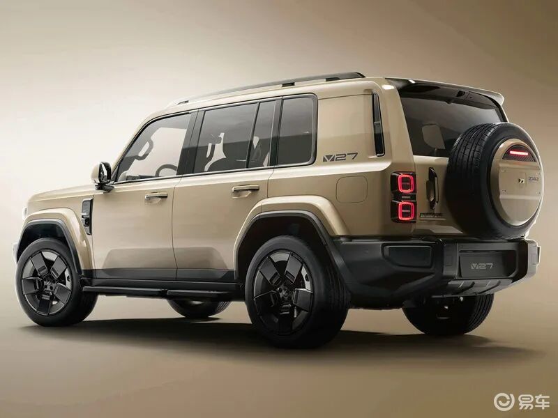 设计方面iCAR V27延续家族硬派设计语言,用平直硬朗的线条、外扩轮眉、复古圆形大灯与外挂式备胎,打造出一眼心动的越野气场。车身提供沙漠黄、瓷器蓝等7种配色,个性十足。