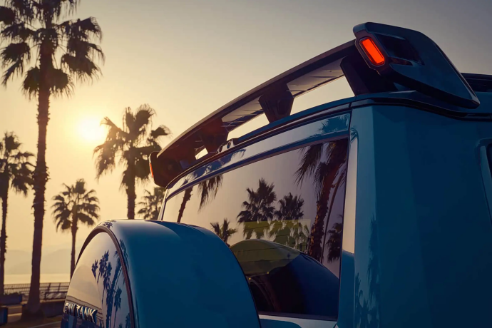 尾部的设计看点更多,不仅延续了硬派越野的标志性侧开门设计,还搭载了夸张的运动尾翼,甚至在两侧还有类似航空识别灯的设计,有着相当突出的科技氛围,具体功能性暂且不聊,哪怕是作为“心情件”,也绝对物超所值,更何况尾翼还能带来更好的气流梳理能力,克服涡流和拍打尾门的气流噪音,对于降低风噪可是有一定的帮助,重点是从尾部来看,真的太帅太有范儿了。