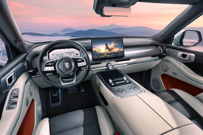 配置上诚意拉满,全液晶仪表盘与15.6英寸2.5K悬浮中控屏组成智能交互中枢,搭载Coffee OS 3系统,操作流畅、显示清晰;保留大量实体按键,方便越野时盲操作,兼顾功能性和实用性。