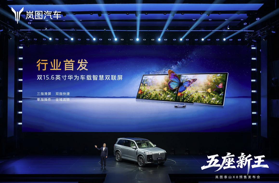 更值得注意的是,泰山X8在智能化上与华为深度绑定,行业首搭鸿蒙座舱5.2(内置MOLA语音大模型),首发双15.6英寸华为车载智慧双联屏,支持三指飞屏、多屏流转。
