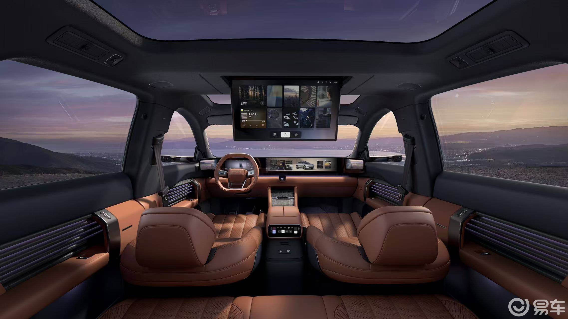 四座版后排中央扶手配备双50瓦无线手机充电、车载冷暖箱和双向调节小桌板。
