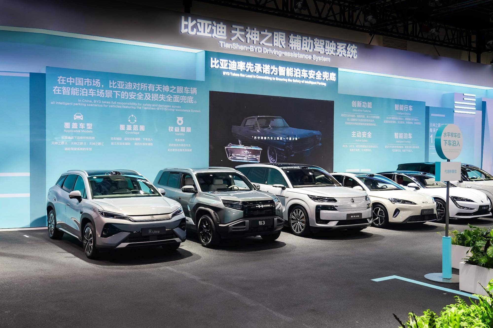 技术是比亚迪发展的核心驱动力,本届车展比亚迪重点展示了三大领先技术体系。在智能化领域,“天神之眼5.0”在安全性、拟人化和通行效率三个方面都达到了行业领先水平,率先承诺为智能泊⻋安全兜底,体现品牌技术自信,敢于为消费者兜底。